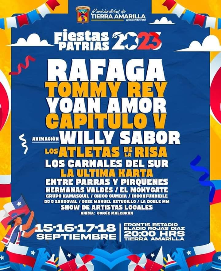 𝗙𝗜𝗘𝗦𝗧𝗔𝗦 𝗣𝗔𝗧𝗥𝗜𝗔𝗦 𝟮𝟬𝟮𝟯 Tierra Amarilla y su parrila de artista .