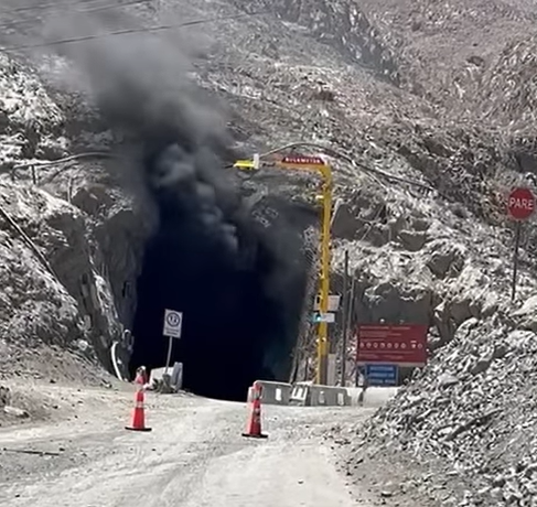 Se registra un incendio en interior mina subterránea de camión en rampa principal a 200 metros del portal mina Trinidad.